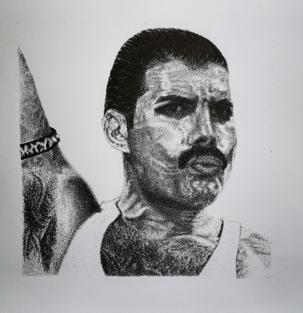 Freddy Mercury – Tekening 30 x 30 cm – ca 175.000 stippen